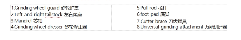 Horizontal rotation angle of grinding wheel stand 砂輪架水平回轉角度 |